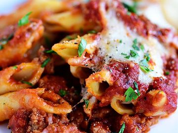 Baked mostaccioli with red sauce (vegetarian) - ½ pan